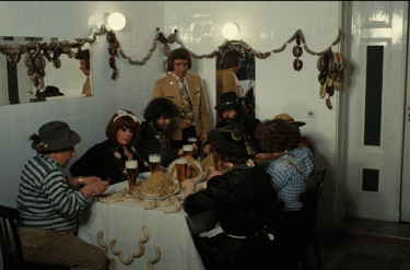 The research elements emerge without prior determination. I search for objects at flea markets, which I then use in installations and experimental filming setups. I create costumes, ceramic tableware, and utensils. I write a script for ten characters and their interactions at the table. The filming takes place both in the studio and outdoors with friends who are not professional actors.