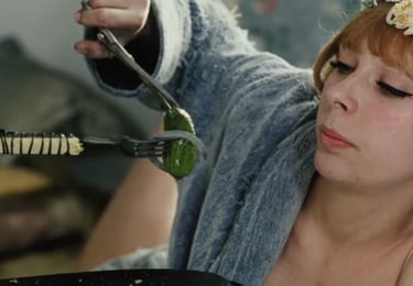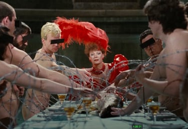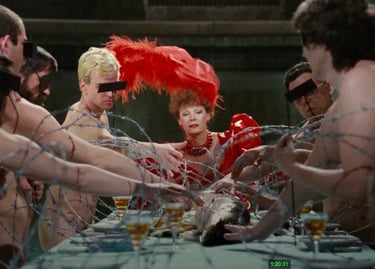 In my research, I draw on a wide range of literature, podcasts, and films. I find inspiration in the Czechoslovak cult film Daisies (Sedmikrásky), The Holy Mountain (A. Jodorowsky), Rućak (A. Hušman), Inauguration of the Pleasure Dome (K. Anger), La Grande Bouffe (L. Ferreri), as well as in Ulrike Ottinger and her scenes of dining across several films, among others. I travel and research, creating reinterpretations and responses to these references through my own artistic language.