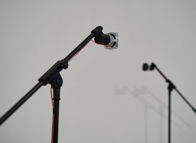 In her work Faces of Voice, the artist Neža Knez builds on her older eponymous work in which she explored the relationship between body language, primarily facial expressions and voice. By recording people slowly and clearly pronouncing the Slovene alphabet, something familiar to them, something close and common, she wanted to see what happens when one tries to pronounce the alphabet — something people usually pronounce automatically — more consciously, focusing on the regularity of pronunciation. In this new work, an eight-channel sound installation, the artist omits the image and thus shifts the focus from facial expressions to the articulation of voices, allowing us to create our own mental images of people pronouncing the alphabet. Each person pronounces the letters in their own rhythm, and the initially harmonized sounds melt into a harmonic cacophony, inviting us to come closer to each speaker to discern individual voices.