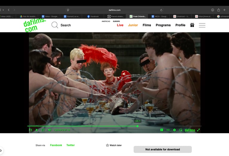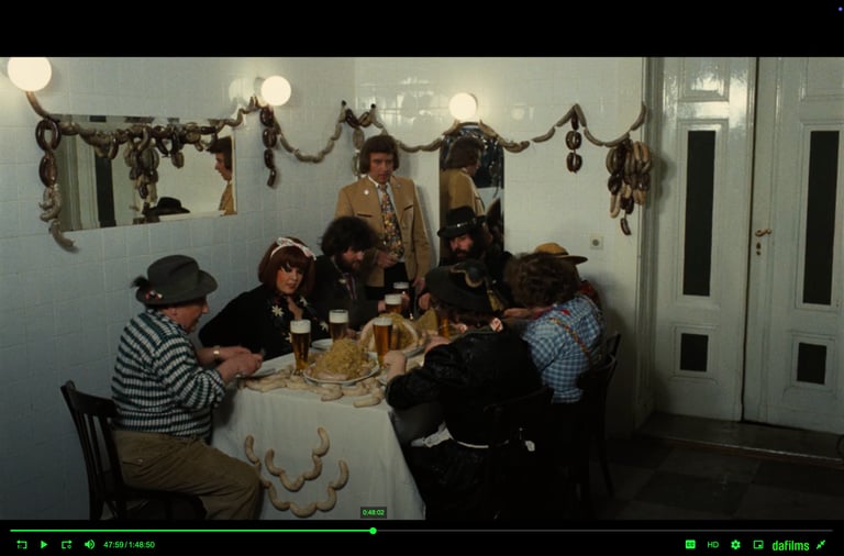In my research, I draw on a wide range of literature, podcasts, and films. I find inspiration in the Czechoslovak cult film Daisies (Sedmikrásky), The Holy Mountain (A. Jodorowsky), Rućak (A. Hušman), Inauguration of the Pleasure Dome (K. Anger), La Grande Bouffe (L. Ferreri), as well as in Ulrike Ottinger and her scenes of dining across several films, among others. I travel and research, creating reinterpretations and responses to these references through my own artistic language.