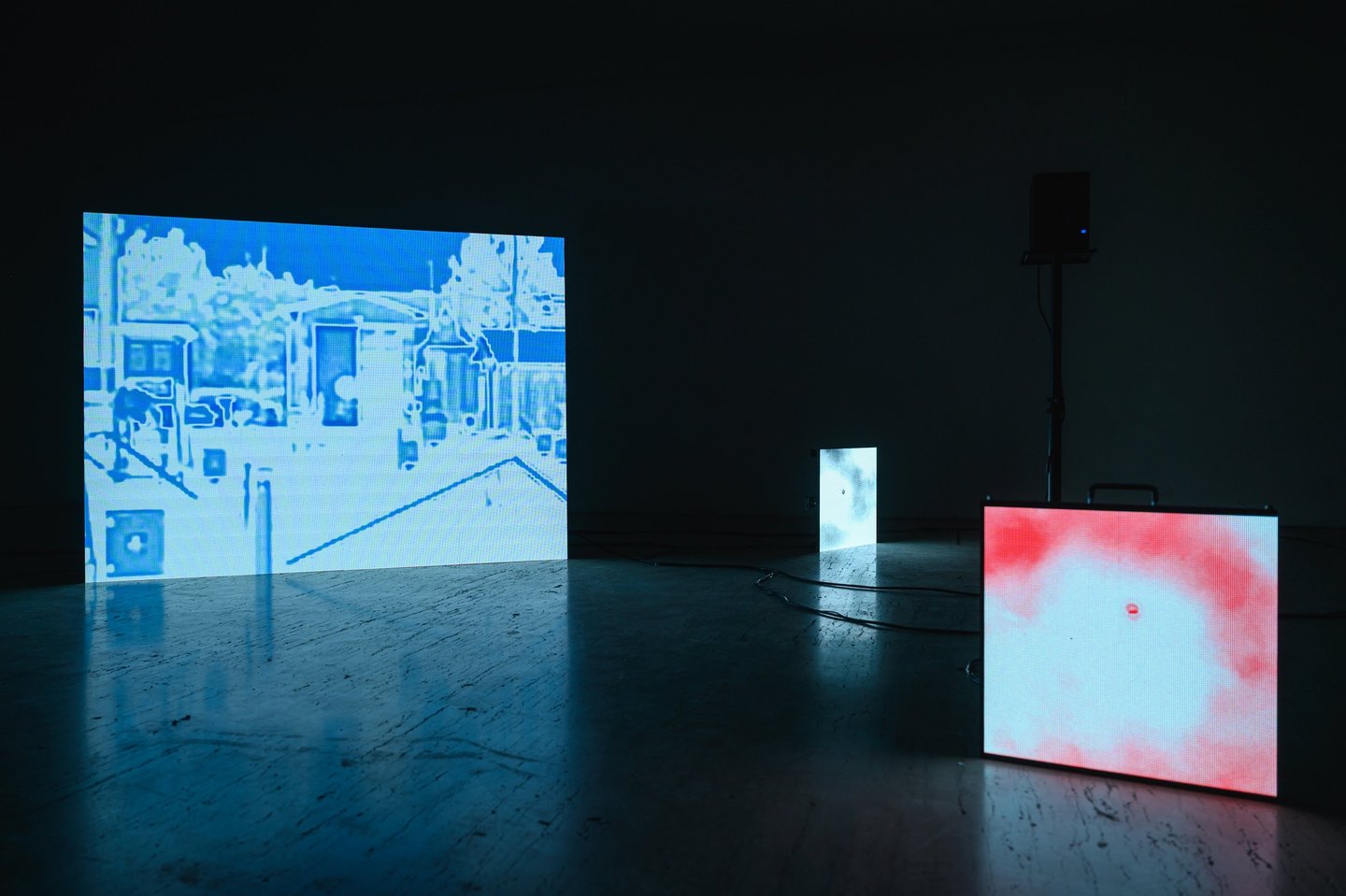 Knez, Guzmić, and Đurđević, through precise reformulations of images, texts, and sounds, create an experiential environment that gives the impression that one’s feet are no longer on the ground, but on water in the air. Water, in its many forms, flows through us, evaporates, cools, and warms in cycles of constantly changing interpretations of the past and the atmosphere, which remains beyond control—regardless of attempts at prediction and regulation.