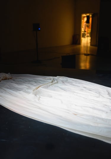 Installation: 4 channel video, 8 channel sound, metal table, objects, dry ice, DIY sound instrument, drawings