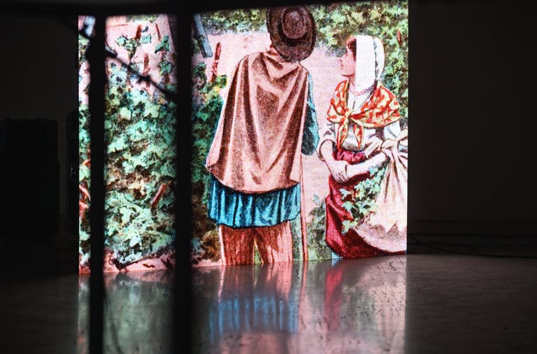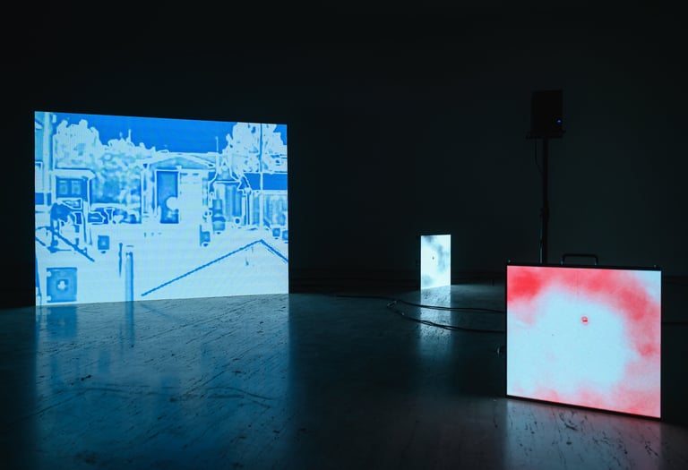 Their practice manifests as a mutation of media communication forms. Associatively, they collect and assemble materials from virtual archives, mobile weather applications, and experimental ethnographic research. Slides from the Meteorological University in Belgrade and other materials from meteorological stations in Ljubljana and Zagreb, at multiple locations, intertwine with intimate authorial digital and analog recordings on 8 mm and 16 mm film and are presented in spatial screen installations that follow a hidden logic. The screens are placed along an apparent path through the space, guiding us through the artists’ creative and research phases, as well as the canons of the history of weather manipulation.