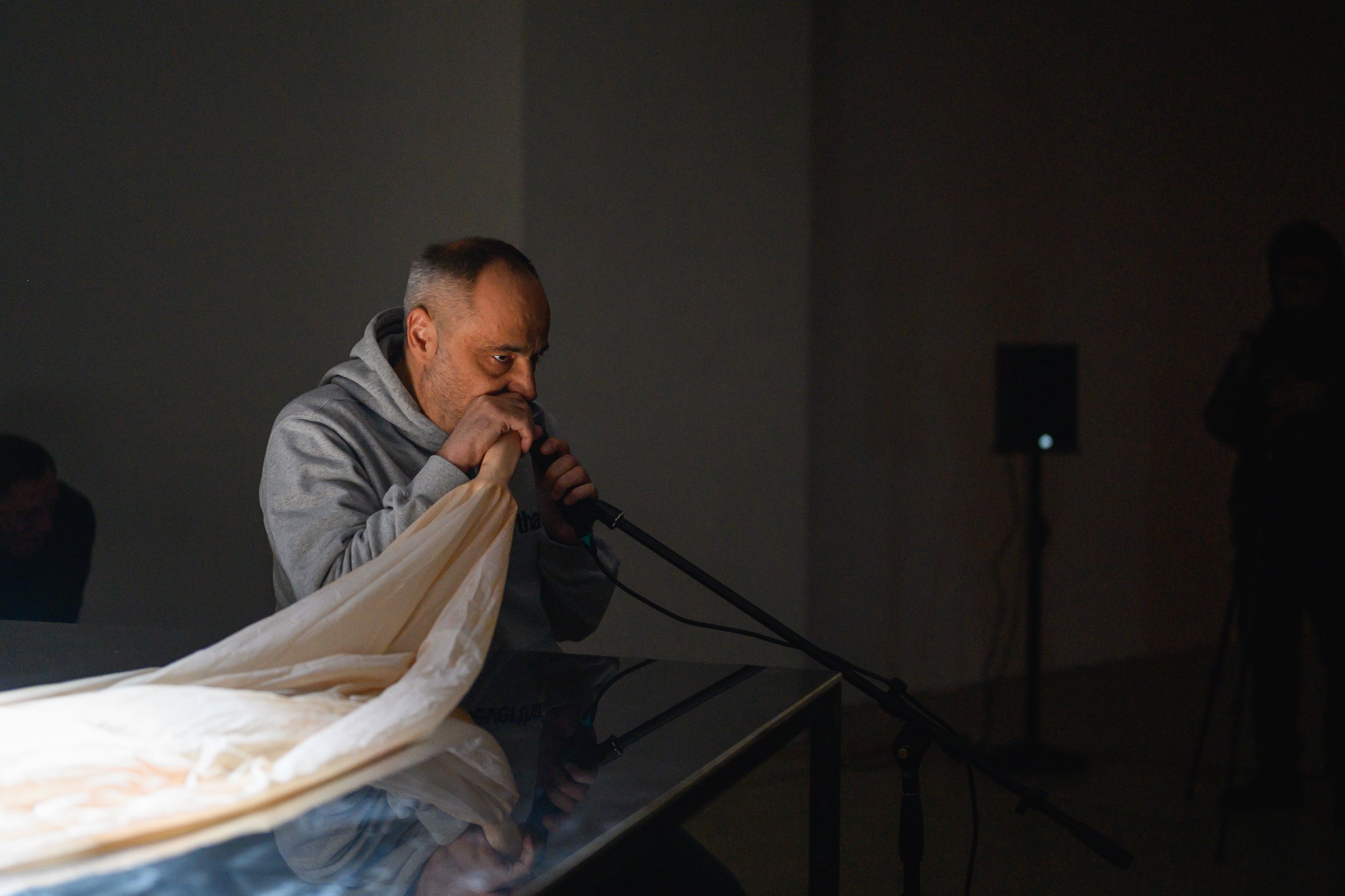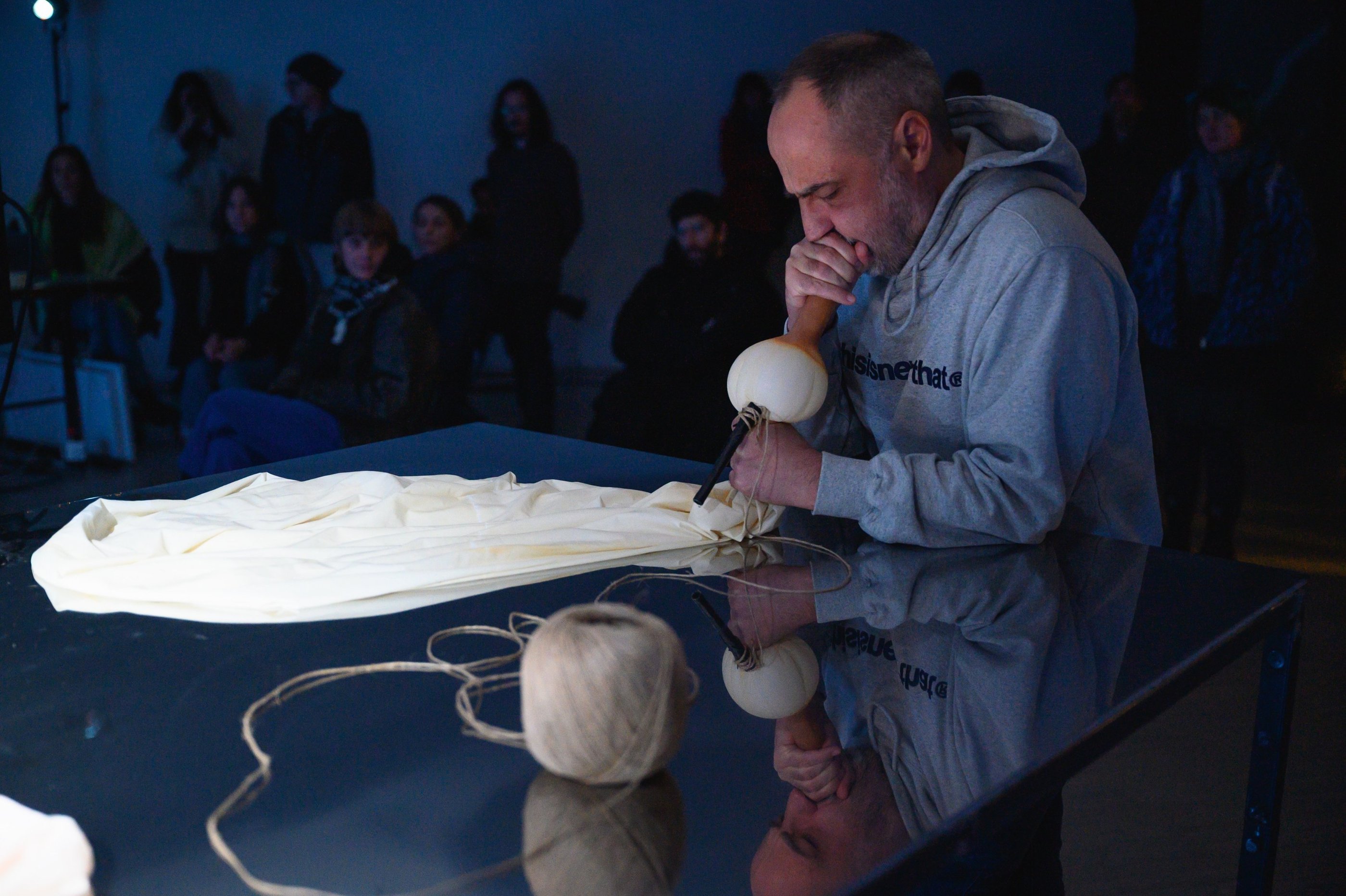 Performance: 4 channel video, 8 channel sound, metal table, objects, dry ice, DIY sound instrument, drawings