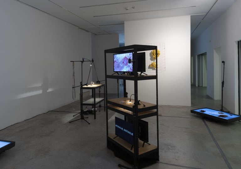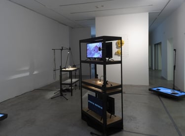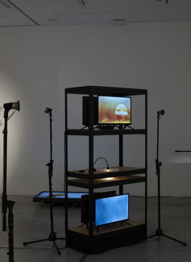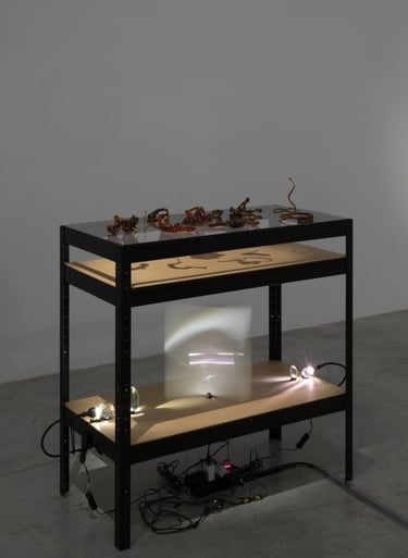 Installation: objects, light objects, videos, 8 canal sound installation, 16mm film